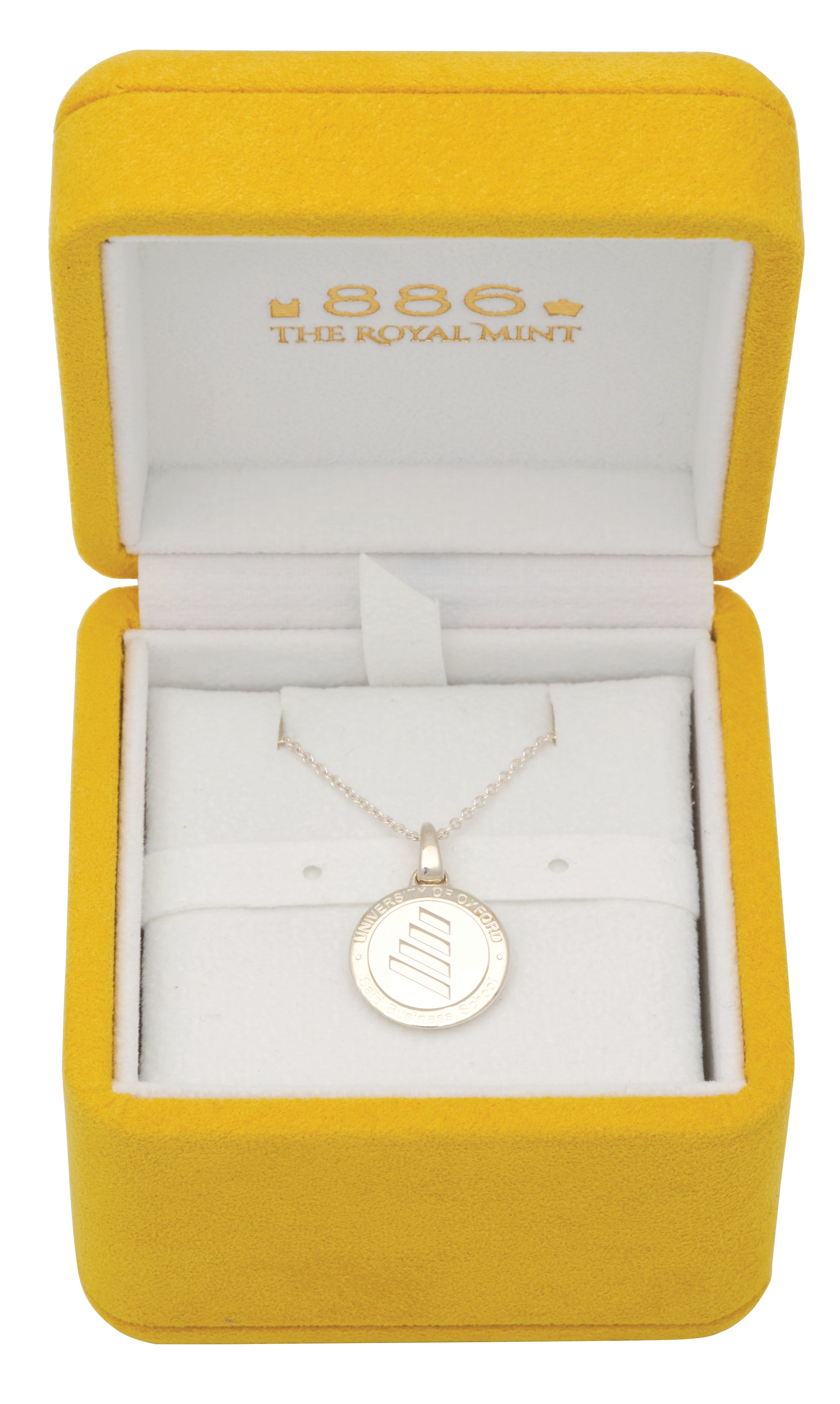 We have created a bespoke range of jewellery in collaboration with The Royal Mint. Featuring our sails logo, this pendant on an 18 inch trace chain contains gold or silver reclaimed from old technology. This process is a separate collaboration with the Royal Mint and our Executive MBA graduates.